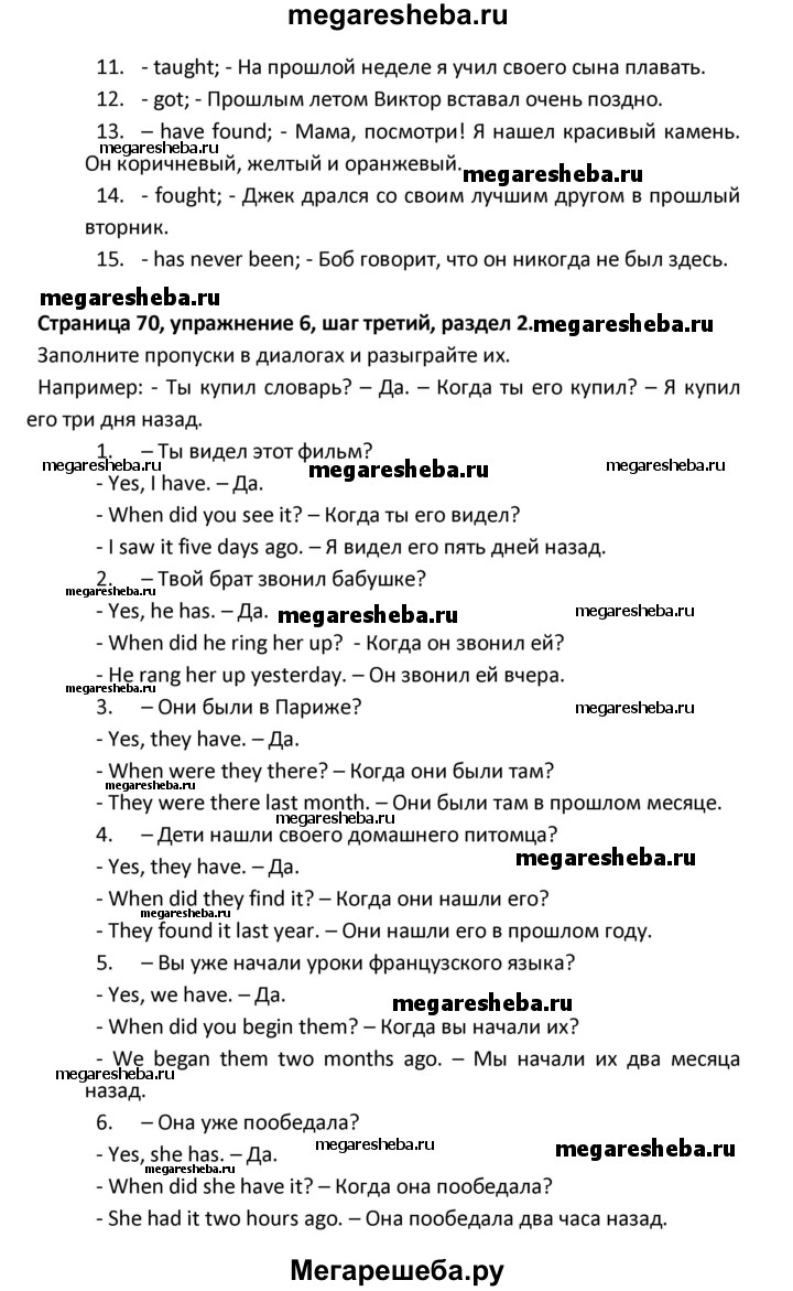ГДЗ по английскому языку 8 класс Афанасьева новый курс (4-ый год обучения) решение к разделу: страница - 70