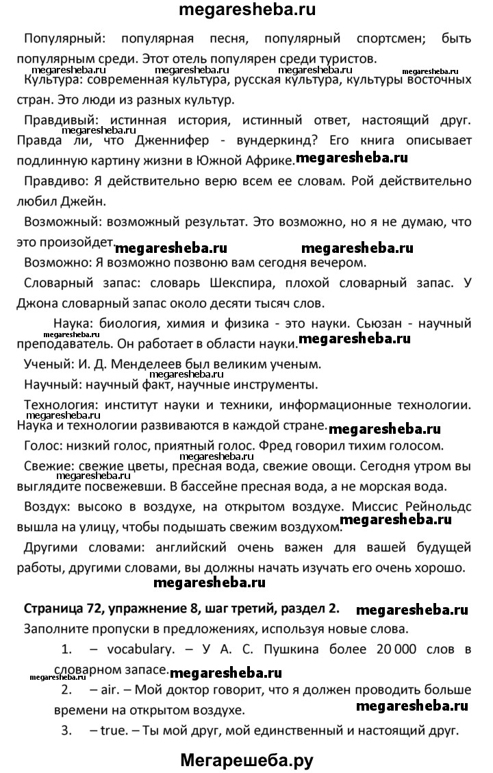 Подробный решебник (ГДЗ) по Английскому языку за 8 (восьмой) класс новый курс (4-ый год обучения) - готовый ответ решение к разделу: страница - 72. Авторы учебника: Афанасьева, Михеева. Издательство: Дрофа 2015.