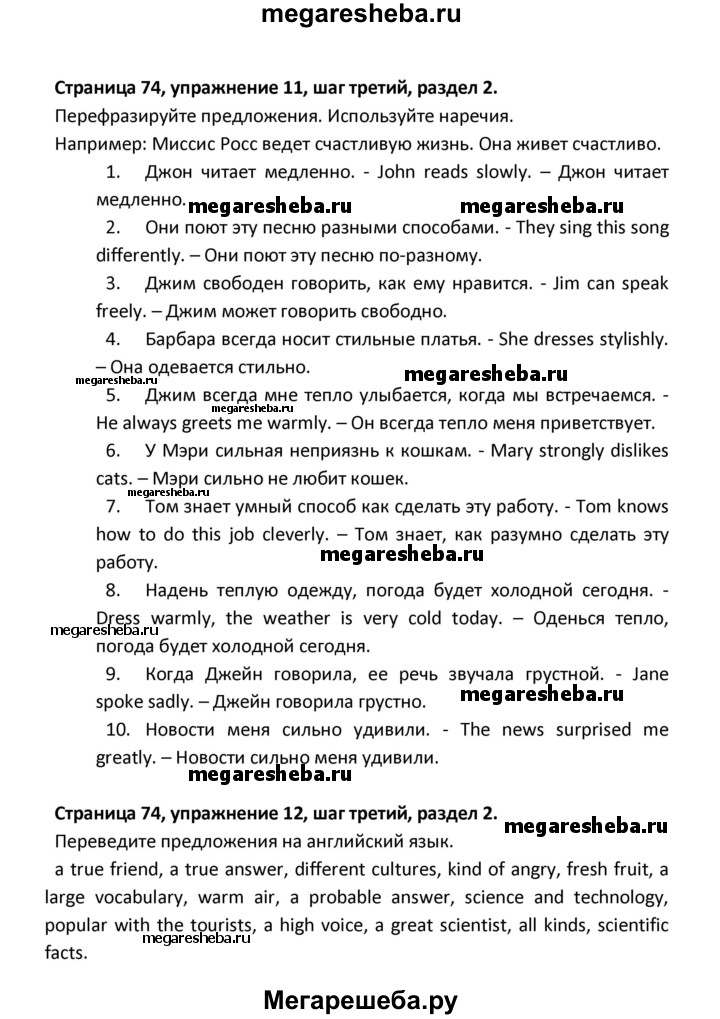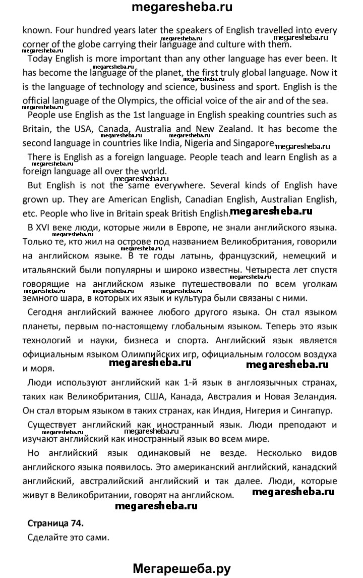 ГДЗ по английскому языку 8 класс Афанасьева новый курс (4-ый год обучения) решение к разделу: страница - 74