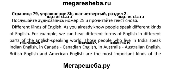 Подробный решебник (ГДЗ) по Английскому языку за 8 (восьмой) класс новый курс (4-ый год обучения) - готовый ответ решение к разделу: страница - 79. Авторы учебника: Афанасьева, Михеева. Издательство: Дрофа 2015.