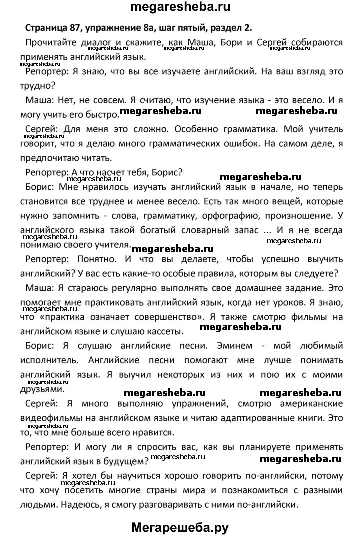 ГДЗ по английскому языку 8 класс Афанасьева новый курс (4-ый год обучения) решение к разделу: страница - 87
