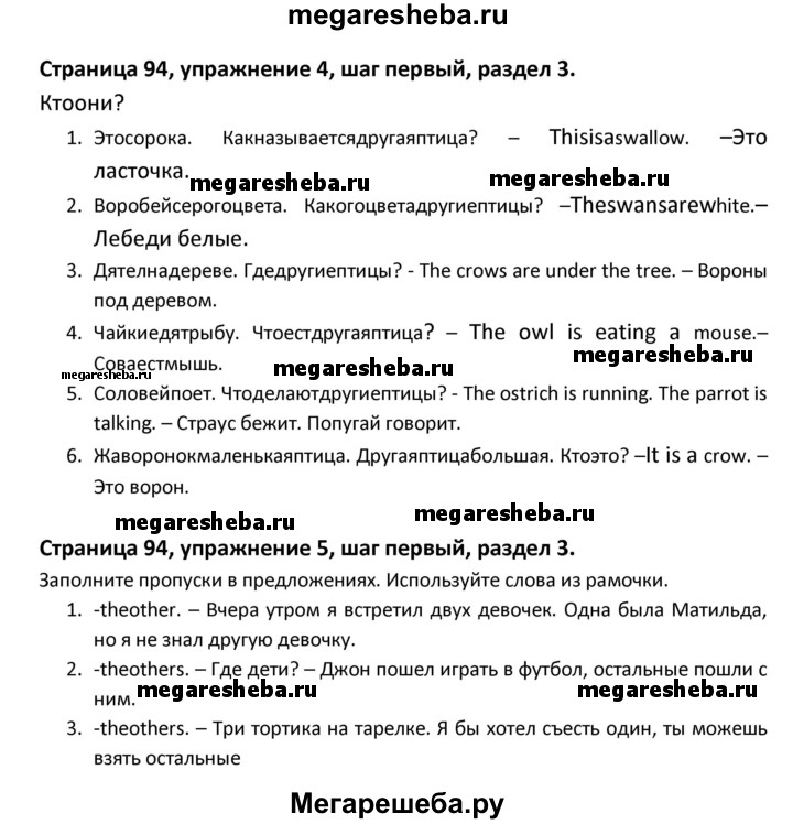 ГДЗ по английскому языку 8 класс Афанасьева новый курс (4-ый год обучения) решение к разделу: страница - 94