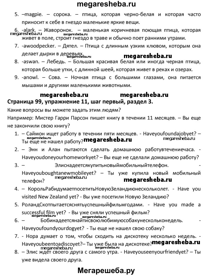 ГДЗ по английскому языку 8 класс Афанасьева новый курс (4-ый год обучения) решение к разделу: страница - 99