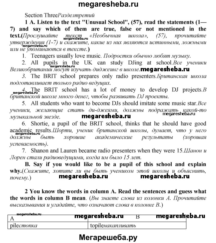 ГДЗ по английскому языку 9 класс Афанасьева новый курс (5-ый год обучения) решение к разделу: страница - 200