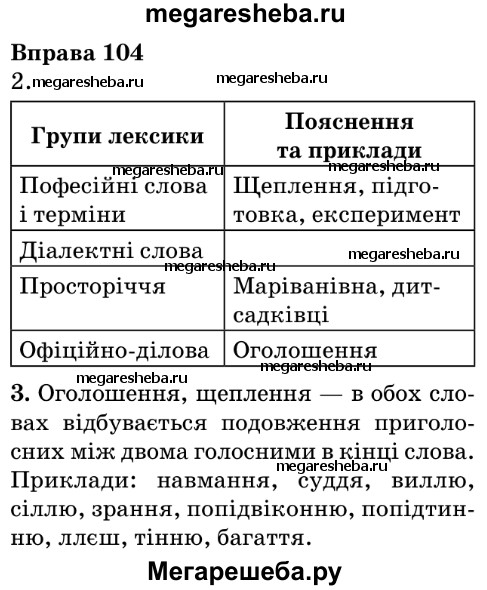 Подробный решебник (ГДЗ) по Украинскому языку за 6 (шестой) класс - готовый ответ Упражнение - 104. Авторы учебника: Ермоленко, Сичова, Жук. Издательство: Грамота 2014.
