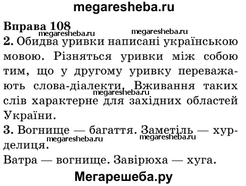 Подробный решебник (ГДЗ) по Украинскому языку за 6 (шестой) класс - готовый ответ Упражнение - 108. Авторы учебника: Ермоленко, Сичова, Жук. Издательство: Грамота 2014.