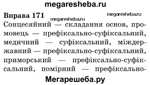 Подробный решебник (ГДЗ) по Украинскому языку за 6 (шестой) класс - готовый ответ Упражнение - 171. Авторы учебника: Ермоленко, Сичова, Жук. Издательство: Грамота 2014.
