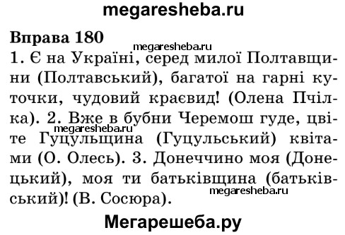 Подробный решебник (ГДЗ) по Украинскому языку за 6 (шестой) класс - готовый ответ Упражнение - 180. Авторы учебника: Ермоленко, Сичова, Жук. Издательство: Грамота 2014.