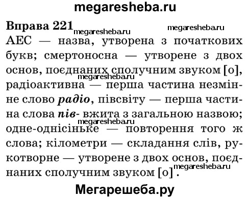 Подробный решебник (ГДЗ) по Украинскому языку за 6 (шестой) класс - готовый ответ Упражнение - 221. Авторы учебника: Ермоленко, Сичова, Жук. Издательство: Грамота 2014.