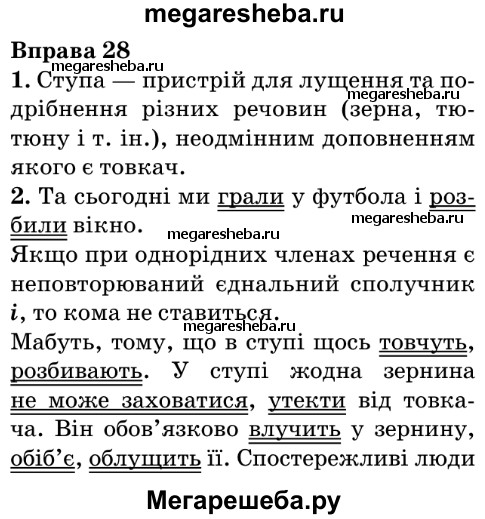 Подробный решебник (ГДЗ) по Украинскому языку за 6 (шестой) класс - готовый ответ Упражнение - 28. Авторы учебника: Ермоленко, Сичова, Жук. Издательство: Грамота 2014.