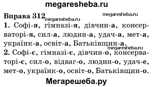 Подробный решебник (ГДЗ) по Украинскому языку за 6 (шестой) класс - готовый ответ Упражнение - 312. Авторы учебника: Ермоленко, Сичова, Жук. Издательство: Грамота 2014.