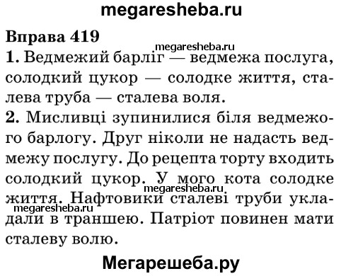 Подробный решебник (ГДЗ) по Украинскому языку за 6 (шестой) класс - готовый ответ Упражнение - 419. Авторы учебника: Ермоленко, Сичова, Жук. Издательство: Грамота 2014.