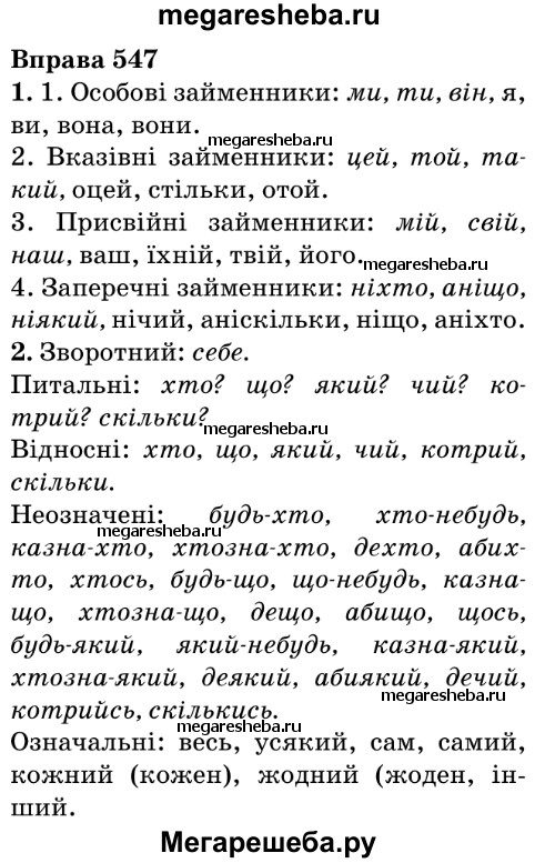 ГДЗ по украинскому языку 6 класс Ермоленко Упражнение - 547