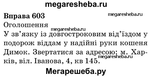 Подробный решебник (ГДЗ) по Украинскому языку за 6 (шестой) класс - готовый ответ Упражнение - 603. Авторы учебника: Ермоленко, Сичова, Жук. Издательство: Грамота 2014.