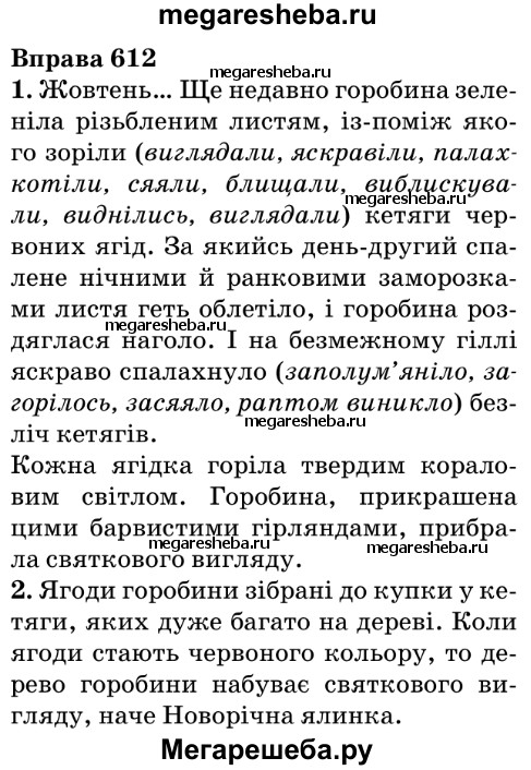 Подробный решебник (ГДЗ) по Украинскому языку за 6 (шестой) класс - готовый ответ Упражнение - 612. Авторы учебника: Ермоленко, Сичова, Жук. Издательство: Грамота 2014.