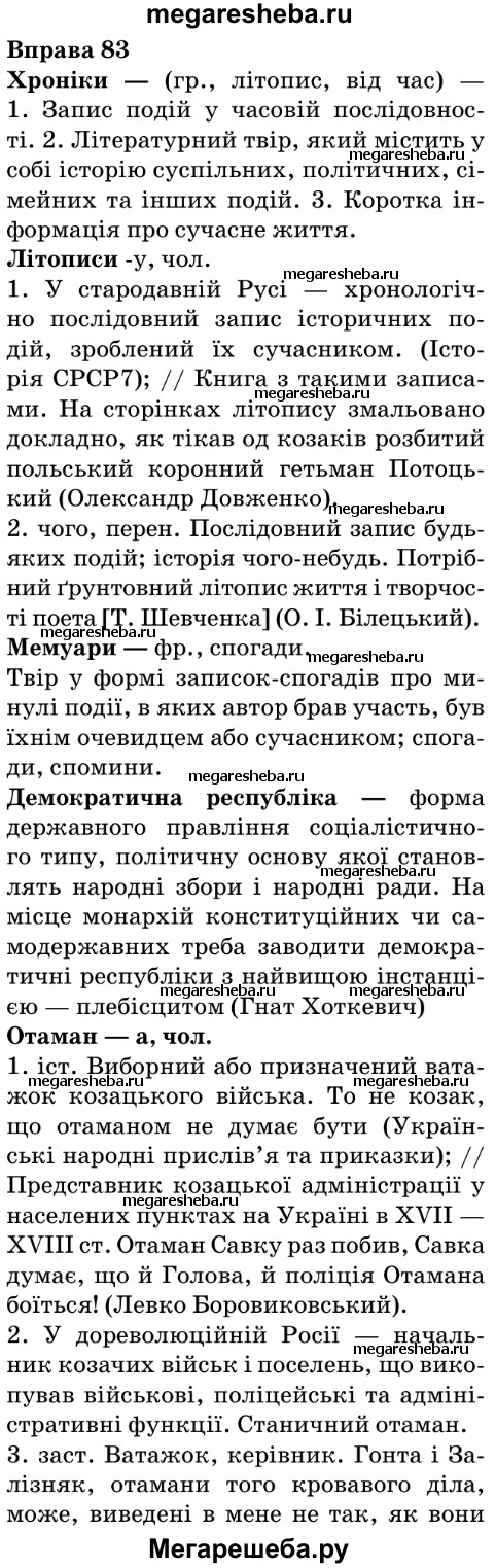 Подробный решебник (ГДЗ) по Украинскому языку за 6 (шестой) класс - готовый ответ Упражнение - 83. Авторы учебника: Ермоленко, Сичова, Жук. Издательство: Грамота 2014.