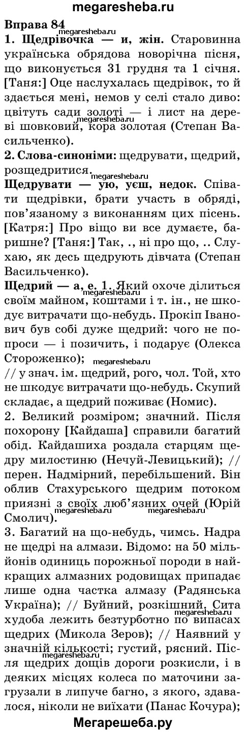Подробный решебник (ГДЗ) по Украинскому языку за 6 (шестой) класс - готовый ответ Упражнение - 84. Авторы учебника: Ермоленко, Сичова, Жук. Издательство: Грамота 2014.