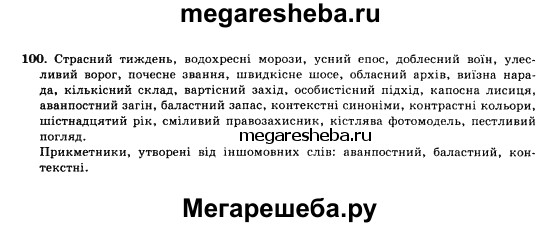 Подробный решебник (ГДЗ) по Украинскому языку за 10 (десятый) класс - готовый ответ упражнение - 100. Авторы учебника: Глазова, Кузнецов. Издательство: Украина 2010.