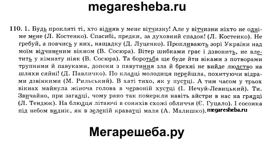 Подробный решебник (ГДЗ) по Украинскому языку за 10 (десятый) класс - готовый ответ упражнение - 110. Авторы учебника: Глазова, Кузнецов. Издательство: Украина 2010.