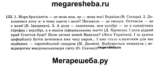Подробный решебник (ГДЗ) по Украинскому языку за 10 (десятый) класс - готовый ответ упражнение - 133. Авторы учебника: Глазова, Кузнецов. Издательство: Украина 2010.