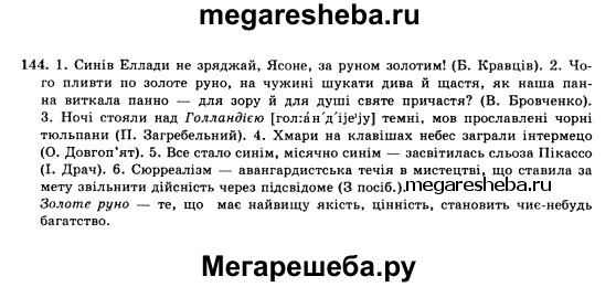 Подробный решебник (ГДЗ) по Украинскому языку за 10 (десятый) класс - готовый ответ упражнение - 144. Авторы учебника: Глазова, Кузнецов. Издательство: Украина 2010.