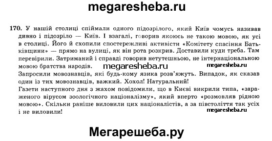 Подробный решебник (ГДЗ) по Украинскому языку за 10 (десятый) класс - готовый ответ упражнение - 170. Авторы учебника: Глазова, Кузнецов. Издательство: Украина 2010.