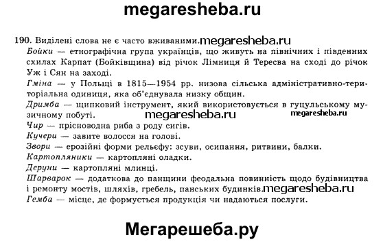 Подробный решебник (ГДЗ) по Украинскому языку за 10 (десятый) класс - готовый ответ упражнение - 190. Авторы учебника: Глазова, Кузнецов. Издательство: Украина 2010.
