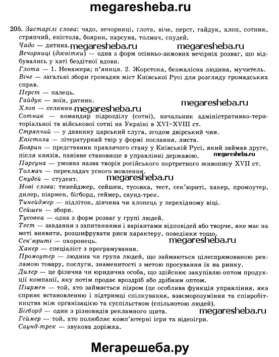 Подробный решебник (ГДЗ) по Украинскому языку за 10 (десятый) класс - готовый ответ упражнение - 205. Авторы учебника: Глазова, Кузнецов. Издательство: Украина 2010.