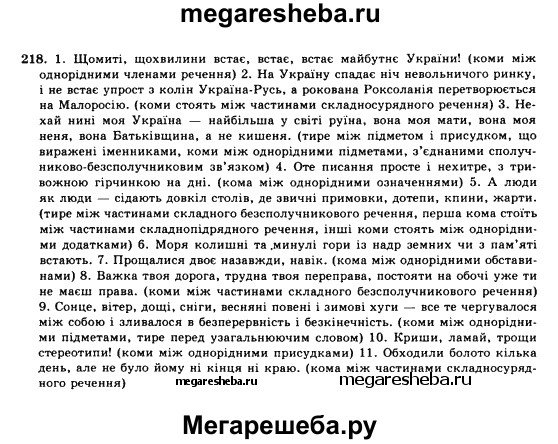 Подробный решебник (ГДЗ) по Украинскому языку за 10 (десятый) класс - готовый ответ упражнение - 218. Авторы учебника: Глазова, Кузнецов. Издательство: Украина 2010.