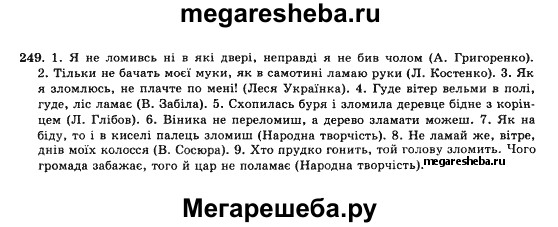 Подробный решебник (ГДЗ) по Украинскому языку за 10 (десятый) класс - готовый ответ упражнение - 249. Авторы учебника: Глазова, Кузнецов. Издательство: Украина 2010.