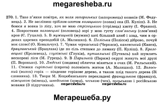 Подробный решебник (ГДЗ) по Украинскому языку за 10 (десятый) класс - готовый ответ упражнение - 270. Авторы учебника: Глазова, Кузнецов. Издательство: Украина 2010.