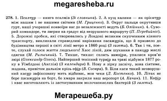 Подробный решебник (ГДЗ) по Украинскому языку за 10 (десятый) класс - готовый ответ упражнение - 278. Авторы учебника: Глазова, Кузнецов. Издательство: Украина 2010.