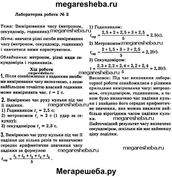 Подробный решебник (ГДЗ) по Физике за 7 (седьмой) класс - готовый ответ Лабораторні роботи - 2. Авторы учебника: Коршак, Ляшенко, Савченко. Издательство: Украина 2015.