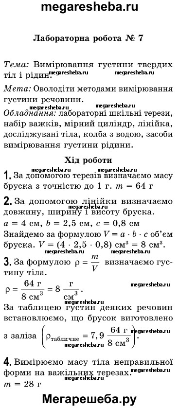 Подробный решебник (ГДЗ) по Физике за 7 (седьмой) класс - готовый ответ Лабораторні роботи - 7. Авторы учебника: Коршак, Ляшенко, Савченко. Издательство: Украина 2015.