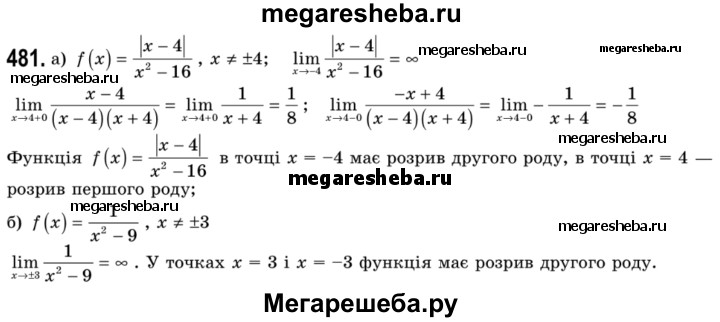 Подробный решебник (ГДЗ) по Алгебре за 11 (одиннадцатый) класс - готовый ответ Номера заданий - 481. Авторы учебника: Бевз, Бевз, Владимирова. Издательство: Освiта 2015.