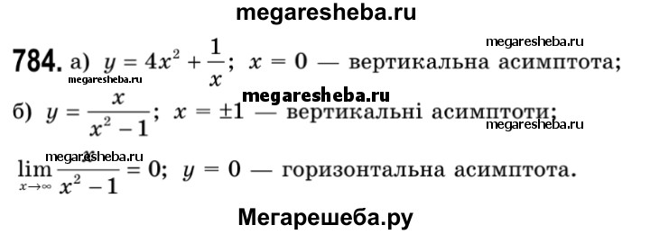 Подробный решебник (ГДЗ) по Алгебре за 11 (одиннадцатый) класс - готовый ответ Номера заданий - 784. Авторы учебника: Бевз, Бевз, Владимирова. Издательство: Освiта 2015.