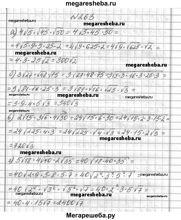 Подробный решебник (ГДЗ) по Алгебре за 8 (восьмой) класс - готовый ответ упражнение - 263. Авторы учебника: Бунимович, Кузнецова, Минаева, Рослова. Издательство: Просвещение 2017.