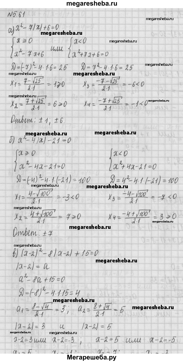 Подробный решебник (ГДЗ) по Алгебре за 8‐9 (восьмой‐девятый) класс задачник - готовый ответ § 5 - 5.61. Авторы учебника: Галицкий, Гольдман, Звавич. Издательство: Просвещение 2019.