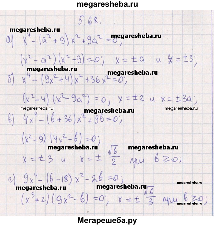 Подробный решебник (ГДЗ) по Алгебре за 8‐9 (восьмой‐девятый) класс задачник - готовый ответ § 5 - 5.68. Авторы учебника: Галицкий, Гольдман, Звавич. Издательство: Просвещение 2019.