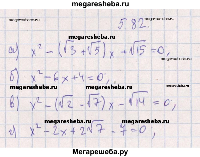 Подробный решебник (ГДЗ) по Алгебре за 8‐9 (восьмой‐девятый) класс задачник - готовый ответ § 5 - 5.82. Авторы учебника: Галицкий, Гольдман, Звавич. Издательство: Просвещение 2019.