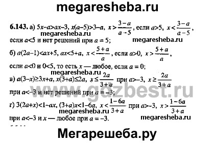 Подробный решебник (ГДЗ) по Алгебре за 8‐9 (восьмой‐девятый) класс задачник - готовый ответ § 6 - 6.143. Авторы учебника: Галицкий, Гольдман, Звавич. Издательство: Просвещение 2019.