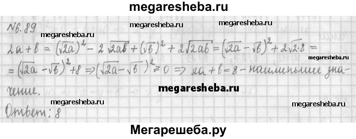 Подробный решебник (ГДЗ) по Алгебре за 8‐9 (восьмой‐девятый) класс задачник - готовый ответ § 6 - 6.89. Авторы учебника: Галицкий, Гольдман, Звавич. Издательство: Просвещение 2019.
