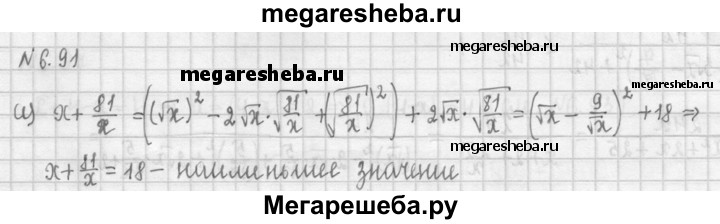 Подробный решебник (ГДЗ) по Алгебре за 8‐9 (восьмой‐девятый) класс задачник - готовый ответ § 6 - 6.91. Авторы учебника: Галицкий, Гольдман, Звавич. Издательство: Просвещение 2019.