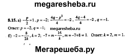 Подробный решебник (ГДЗ) по Алгебре за 8‐9 (восьмой‐девятый) класс задачник - готовый ответ § 8 - 8.15. Авторы учебника: Галицкий, Гольдман, Звавич. Издательство: Просвещение 2019.