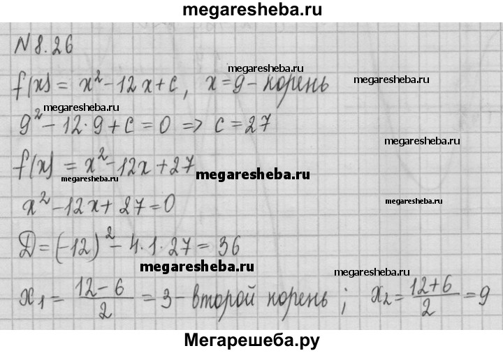 Подробный решебник (ГДЗ) по Алгебре за 8‐9 (восьмой‐девятый) класс задачник - готовый ответ § 8 - 8.26. Авторы учебника: Галицкий, Гольдман, Звавич. Издательство: Просвещение 2019.