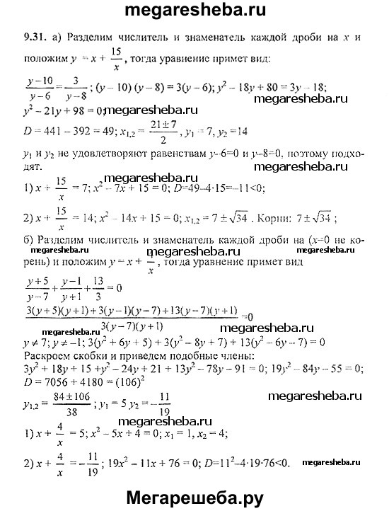 Подробный решебник (ГДЗ) по Алгебре за 8‐9 (восьмой‐девятый) класс задачник - готовый ответ § 9 - 9.31. Авторы учебника: Галицкий, Гольдман, Звавич. Издательство: Просвещение 2019.
