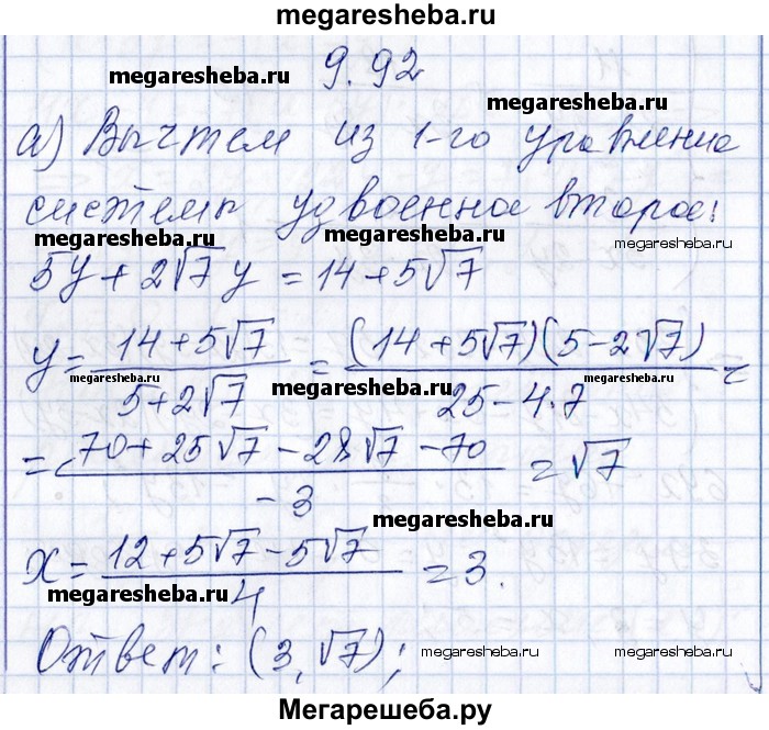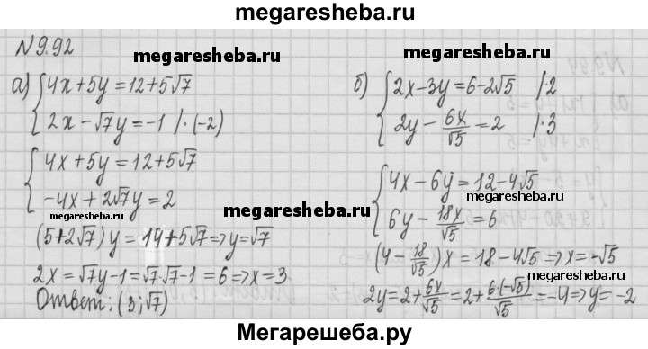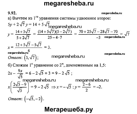 Подробный решебник (ГДЗ) по Алгебре за 8‐9 (восьмой‐девятый) класс задачник - готовый ответ § 9 - 9.92. Авторы учебника: Галицкий, Гольдман, Звавич. Издательство: Просвещение 2019.