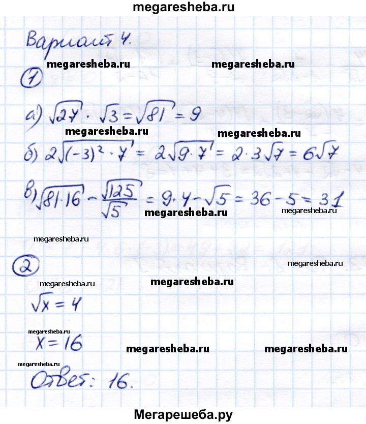 Подробный решебник (ГДЗ) по Алгебре за 8 (восьмой) класс Контрольные измерительные материалы (ким) - готовый ответ контрольная работа контрольная работа 4 (вариант) - 4. Авторы учебника: Глазков, Гаиашвили, Ахременкова. Издательство: Экзамен 2014.