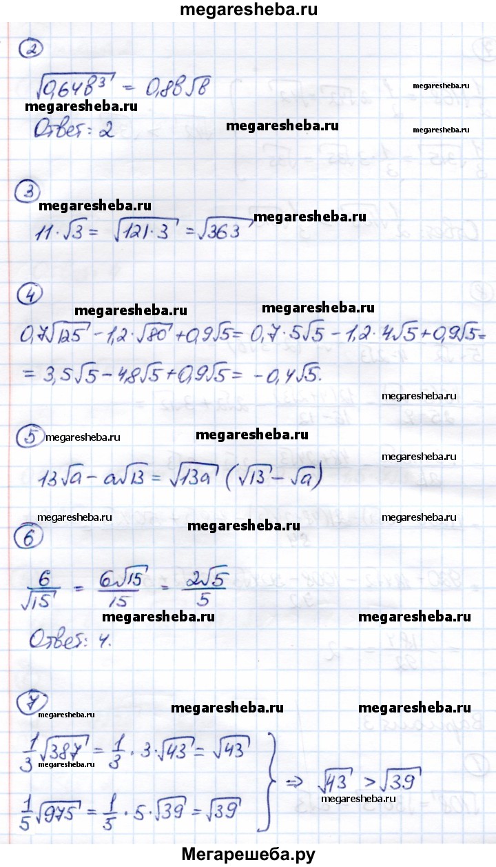 Подробный решебник (ГДЗ) по Алгебре за 8 (восьмой) класс Контрольные измерительные материалы (ким) - готовый ответ тест тест 7 (вариант) - 3. Авторы учебника: Глазков, Гаиашвили, Ахременкова. Издательство: Экзамен 2014.