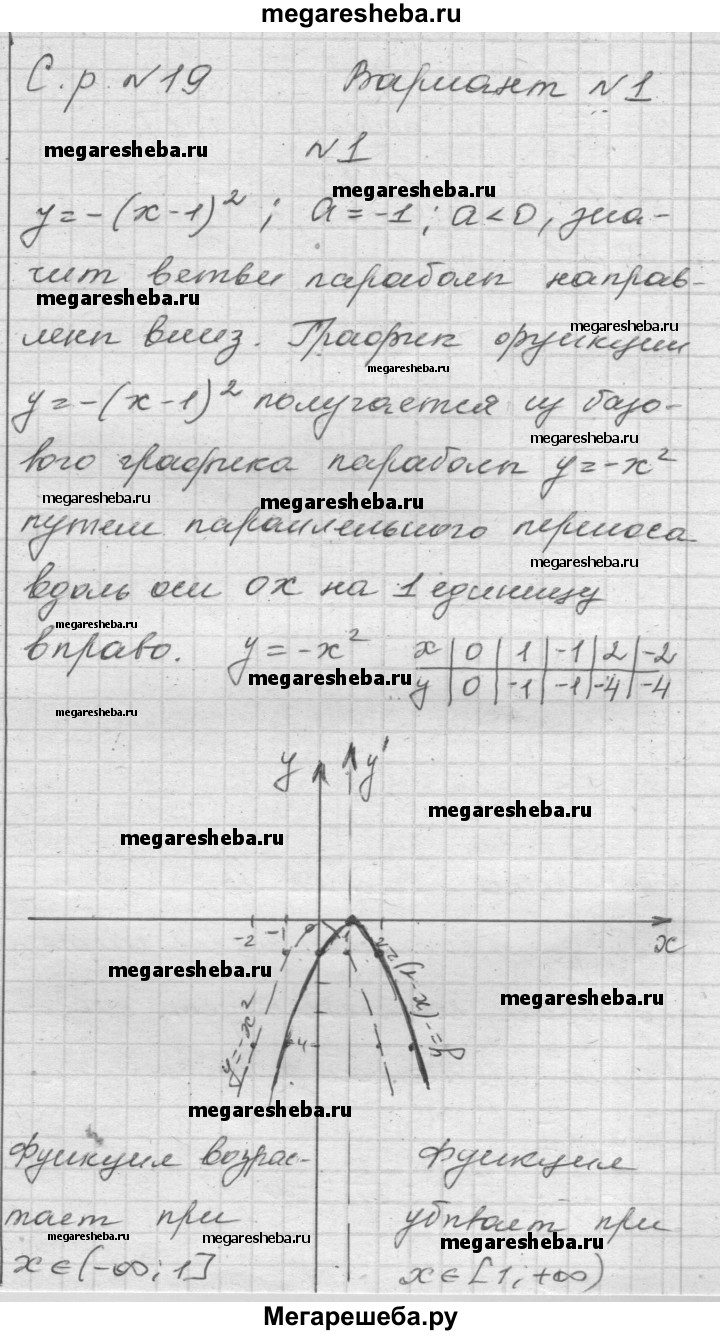 Подробный решебник (ГДЗ) по Алгебре за 8 (восьмой) класс контрольные и самостоятельные работы - готовый ответ самостоятельные работы СР-19. вариант - 1. Авторы учебника: Попов. Издательство: Экзамен 2016.
